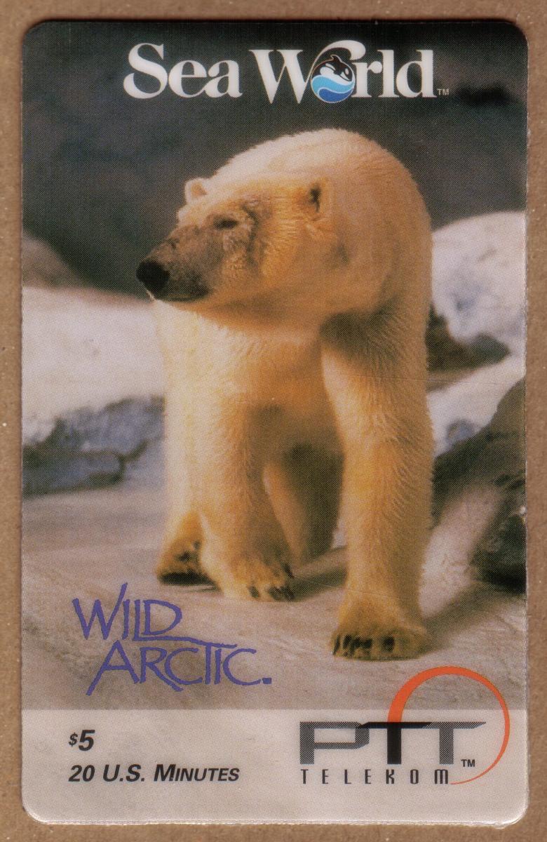 $5 Sea World Wild Arctic card featuring a polar bear, Arctic theme, marine wildlife, conservation, and Florida theme park memorabilia. |
