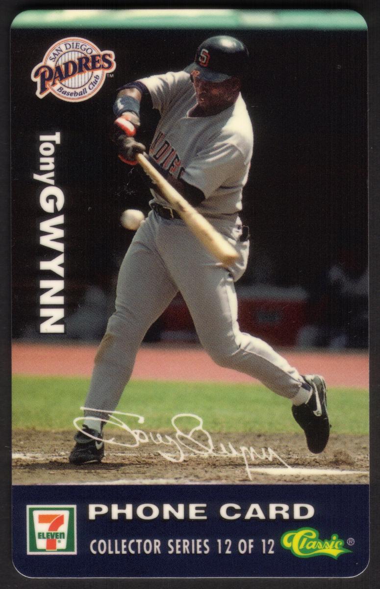 The card’s layout features clear textual elements that identify Tony Gwynn and the San Diego Padres, set against a stylized background that complements the sports theme. The overall presentation reflects an official MLB collectible issued in partnership with 7-Eleven, focusing on one of baseball’s most renowned hitters.