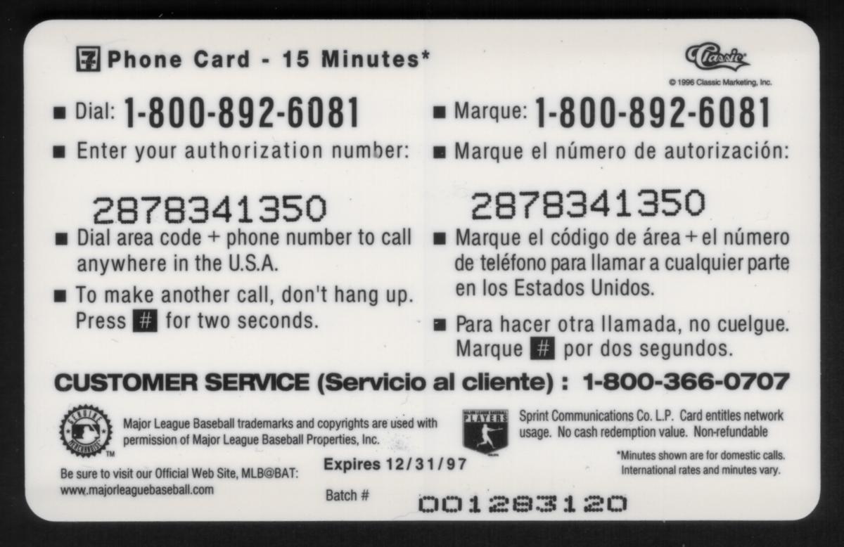 Since we have the world's largest inventory of USA phonecards for collectors, you will not necessarily receive the identical serial/batch/PIN number that we have scanned/pictured.