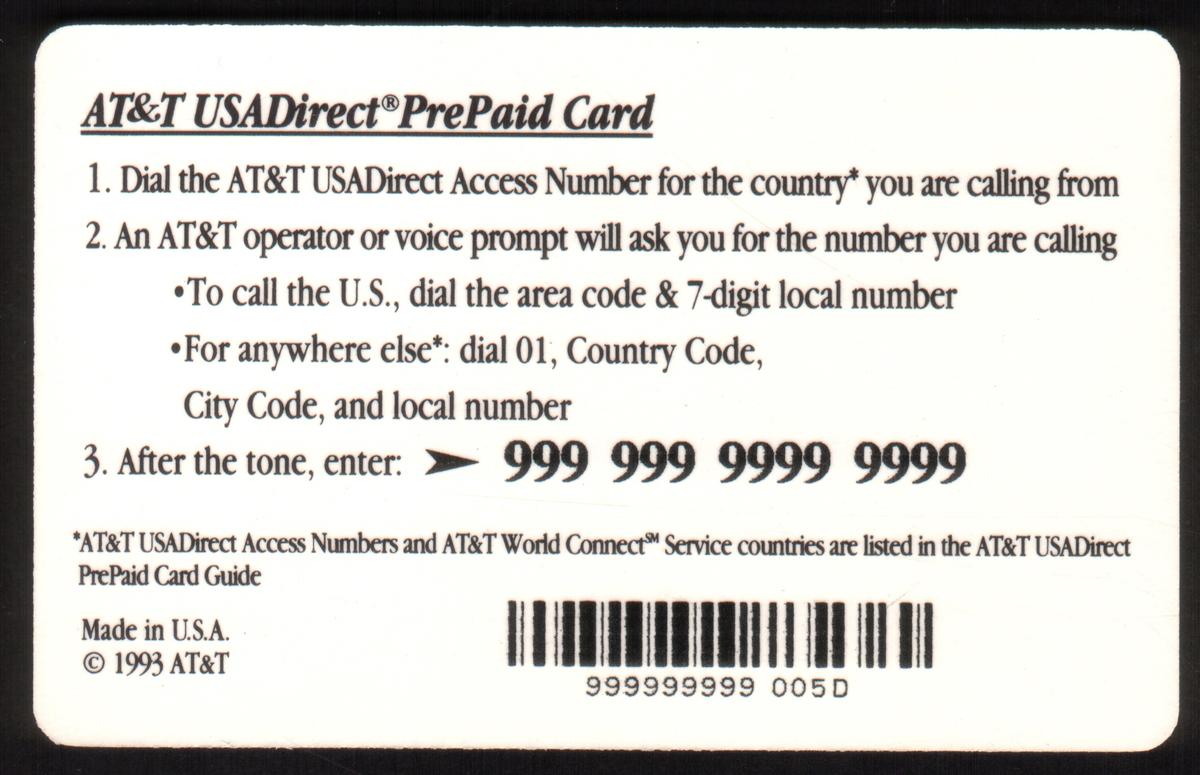 This card is designed for prepaid USADirect phone services provided by AT&T and holds collectible value for card collectors interested in promotional telecommunications cards.