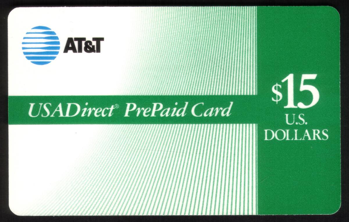 This collectible is an official AT&T prepaid calling card designed for use within the United States. It is specifically branded as a USADirect card, reflecting its intended service area and function. The card’s presentation aligns with collectible prepaid telecommunications cards issued by AT&T during the era of prepaid calling services.