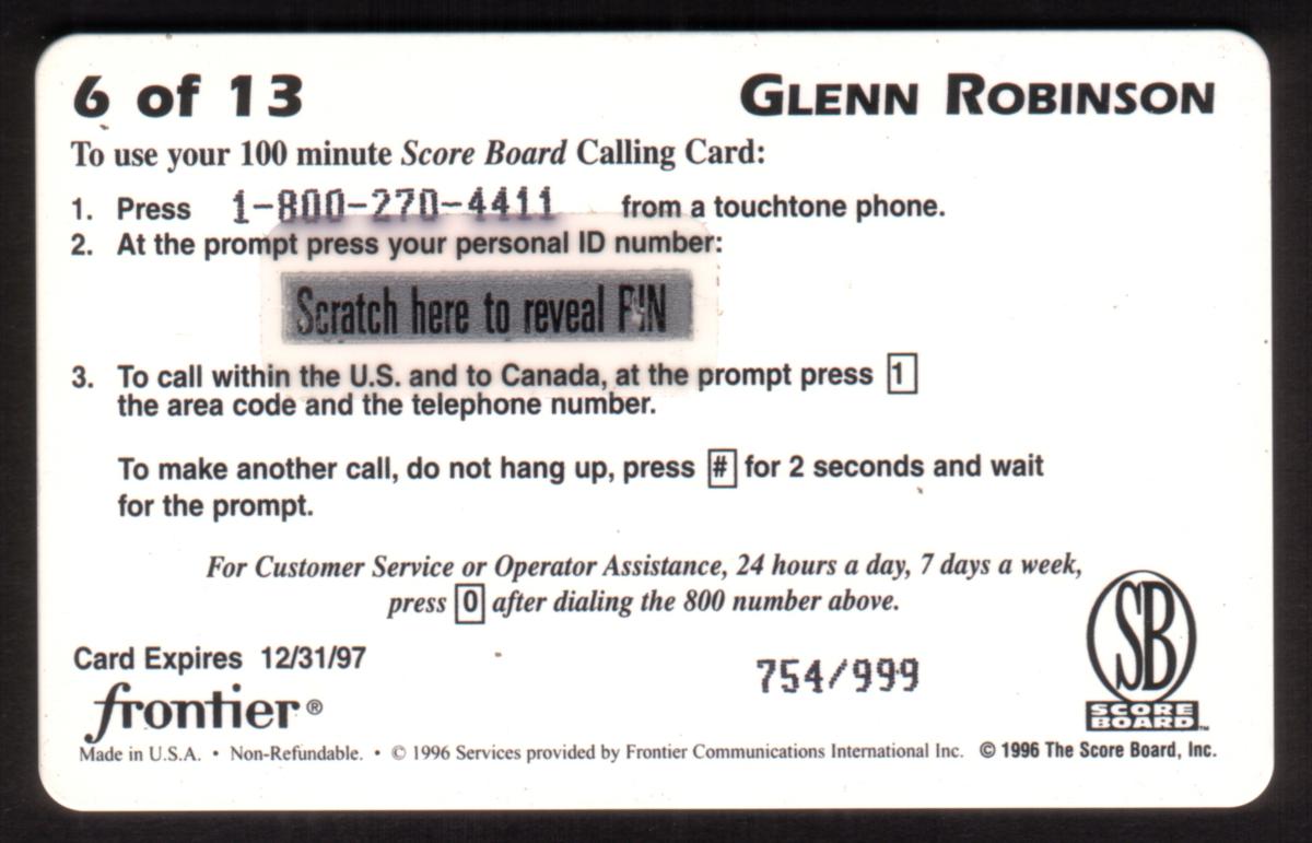 Since we have the world's largest inventory of USA phonecards for collectors, you will not necessarily receive the identical serial/batch/PIN number that we have scanned/pictured.