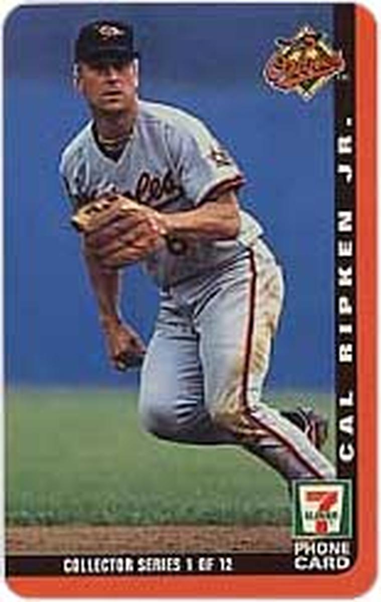 This collectible item is a Major League Baseball (MLB) memorabilia card featuring Cal Ripken, Jr., a celebrated baseball player. The card is linked to the Baltimore Orioles and prominently displays the Major League Baseball and 7-Eleven branding. The design includes the name "Cal Ripken, Jr." and his jersey number "#1/12," indicating it is part of a limited edition series numbered out of twelve. The front of the card includes the text "Orioles 30m," which may reference a milestone or event related to Cal Ripken, Jr. and the team.
