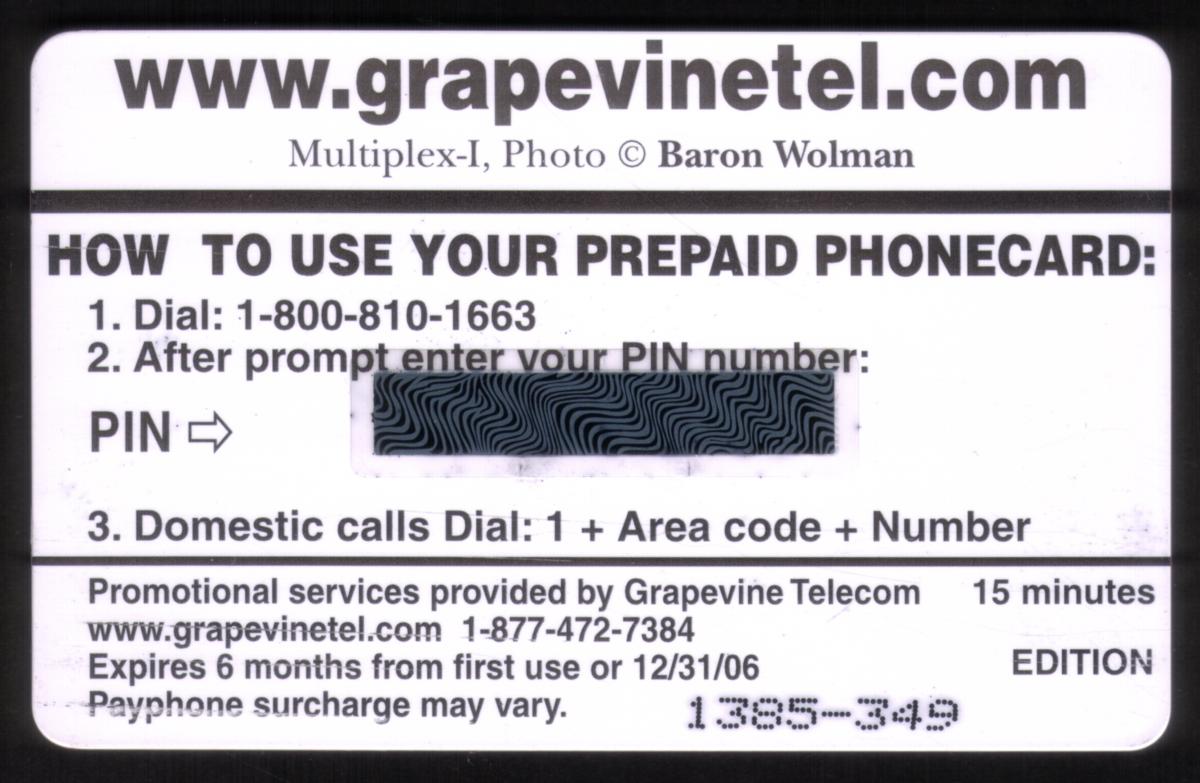Since we have the world's largest inventory of USA phonecards for collectors, you will not necessarily receive the identical serial/batch/PIN number that we have scanned/pictured.