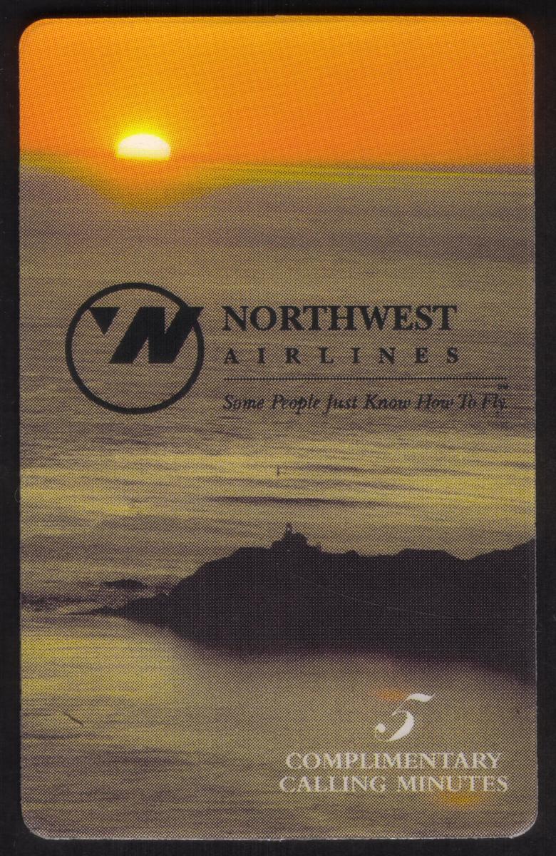 Prominently displayed in the lower portion of the card are the corporate logos of AT&T and Northwest Airlines. The AT&T logo consists of a globe-like design with horizontal lines, accompanied by the text "AT&T" in black capital letters beside it. The Northwest Airlines logo appears in red with the emblem and the word "NORTHWEST" in uppercase letters. Above the logos, white text reads "5m Complimentary Northwest Airlines," indicating the card’s value and promotional theme.