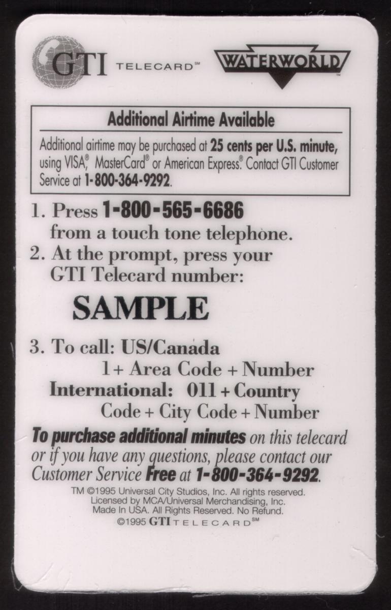 Since we have the world's largest inventory of USA phonecards for collectors, you will not necessarily receive the identical serial/batch/PIN number that we have scanned/pictured.