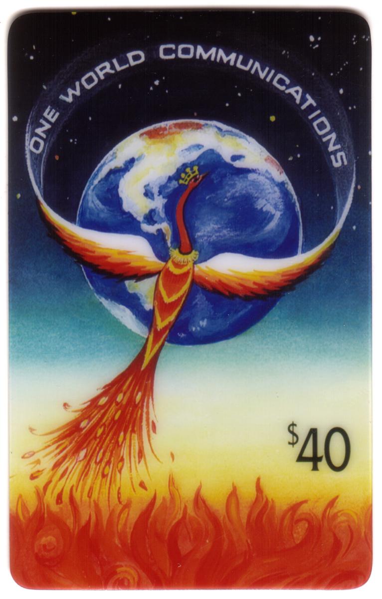 At the lower section of the card, the value "$40" is clearly visible, alongside the text "Face Phoenix," which appears to be a designation related to the card series or issuer. The artwork combines elements of fantasy and paintings with natural motifs, including detailed bird feather illustrations. The word "WorldCom" is also included on the card, associating it with the communicating or telecommunications theme suggested by the design.