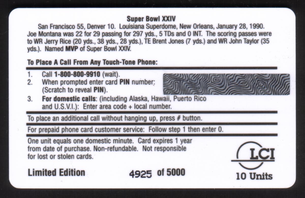 Since we have the world's largest inventory of USA phonecards for collectors, you will not necessarily receive the identical serial/batch/PIN number that we have scanned/pictured.