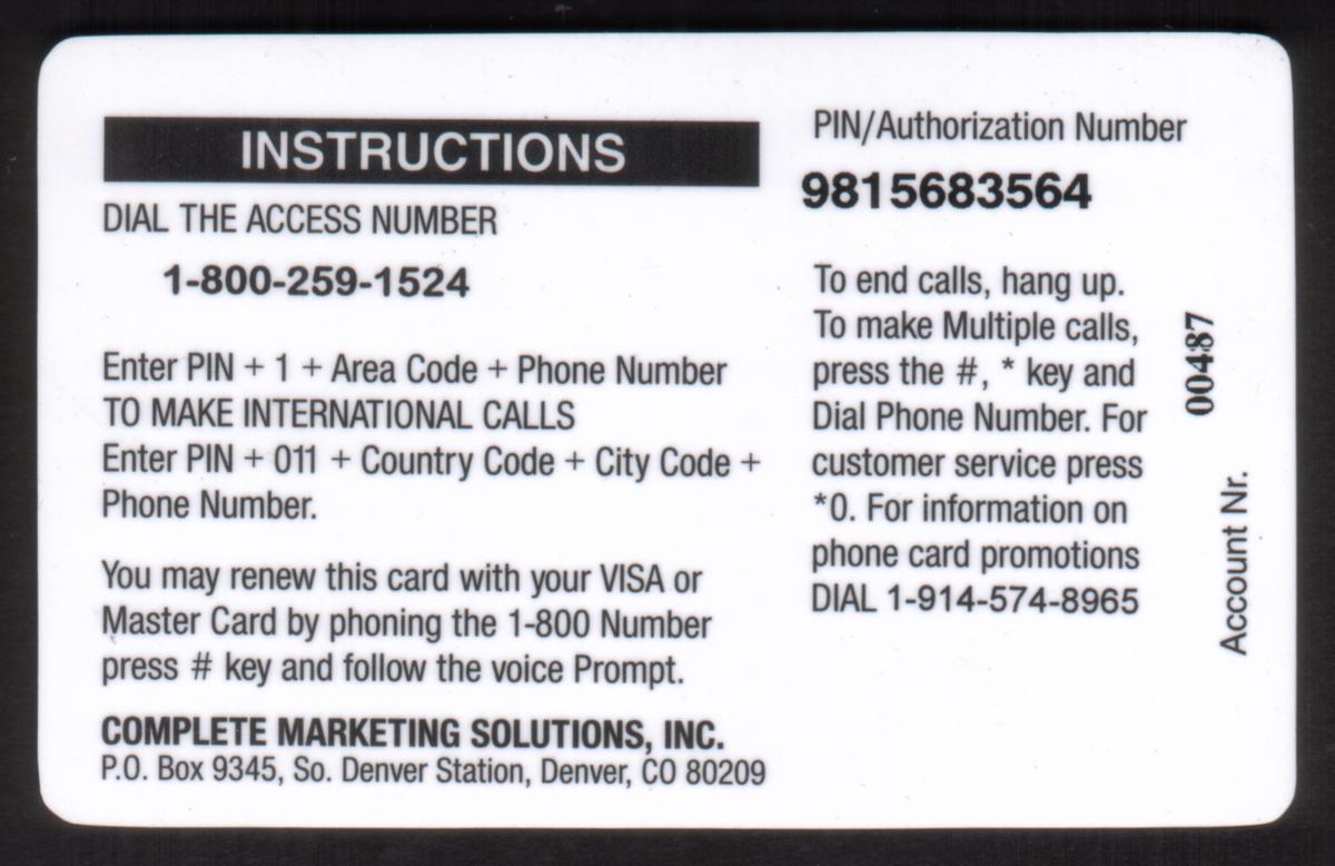 Since we have the world's largest inventory of USA phonecards for collectors, you will not necessarily receive the identical serial/batch/PIN number that we have scanned/pictured.