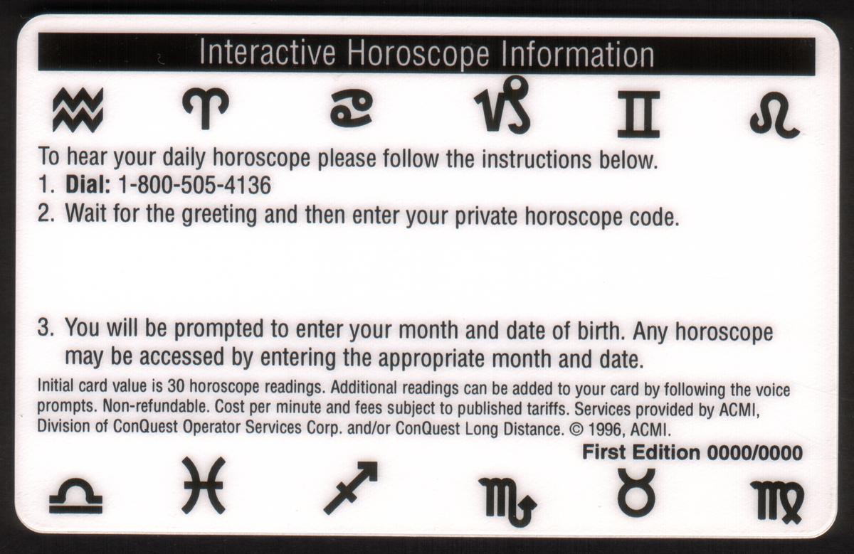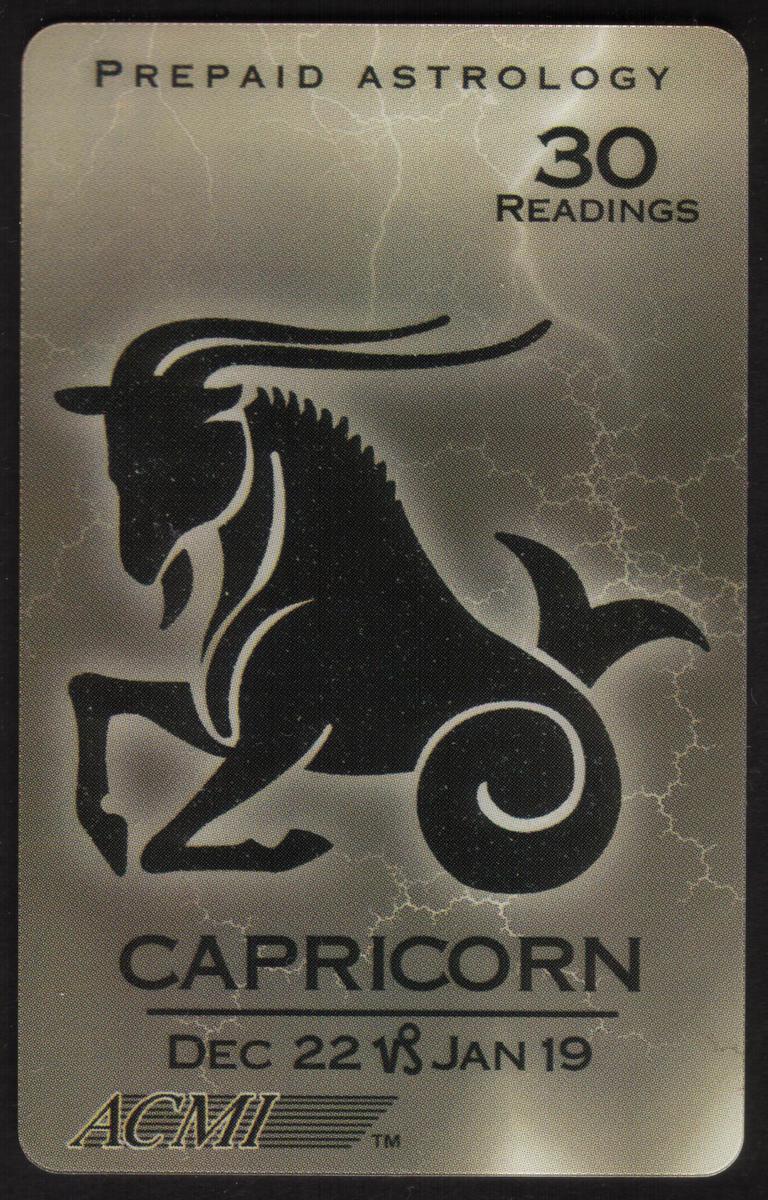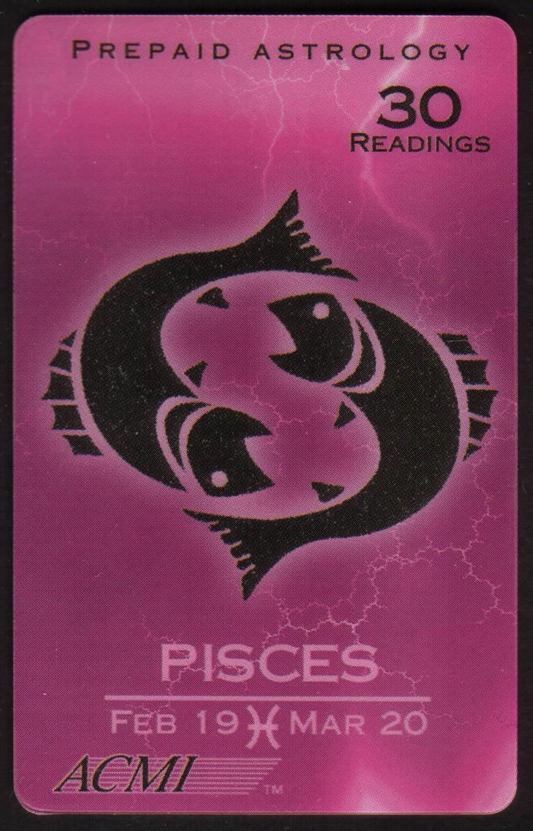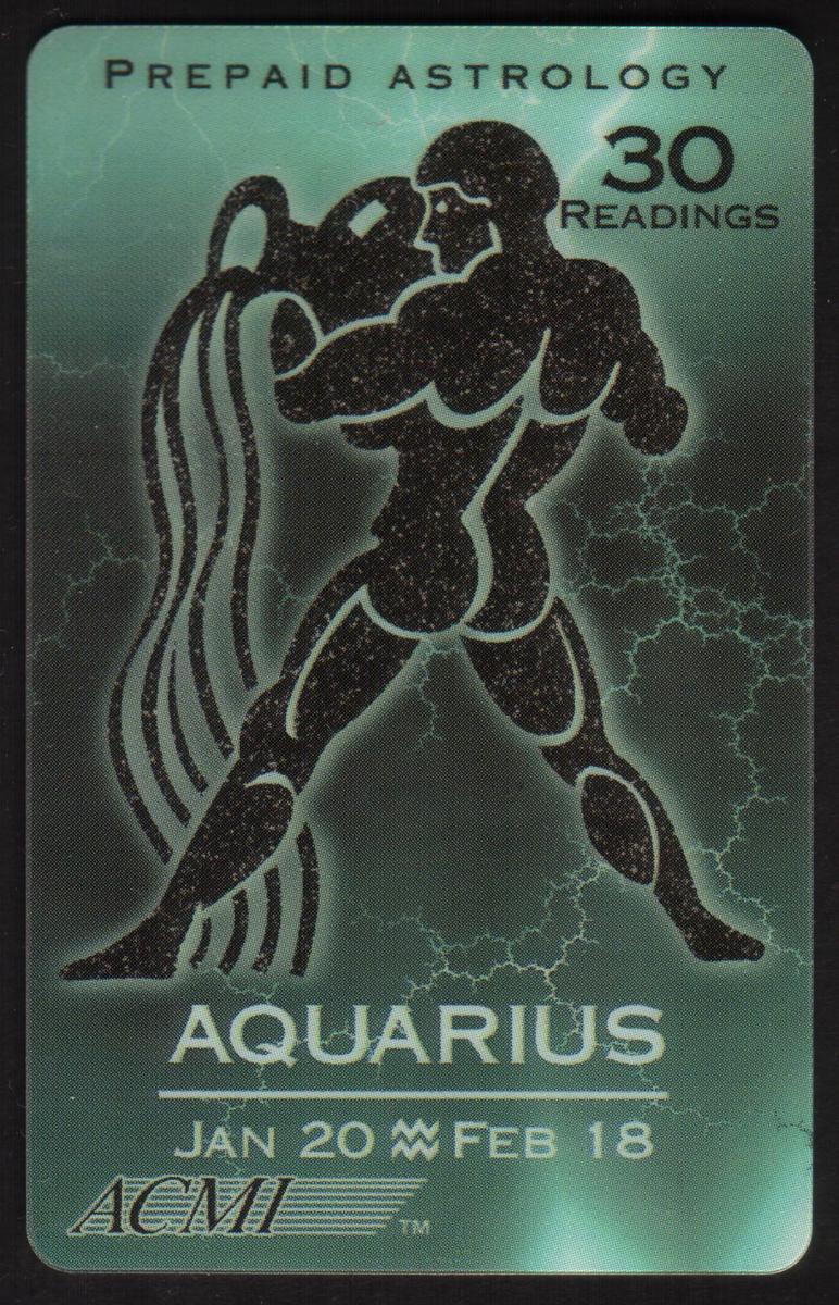 Each card offers 30 prepaid astrology readings, as indicated by the "30 READINGS" text at the top right. This cohesive series highlights the traditional zodiac iconography and date ranges, making it a collectible set focused on spiritual and astrological themes. No additional text or imagery appears beyond the bold zodiac graphics, date ranges, prepaid astrology reading info, and the ACMI brand on the front.