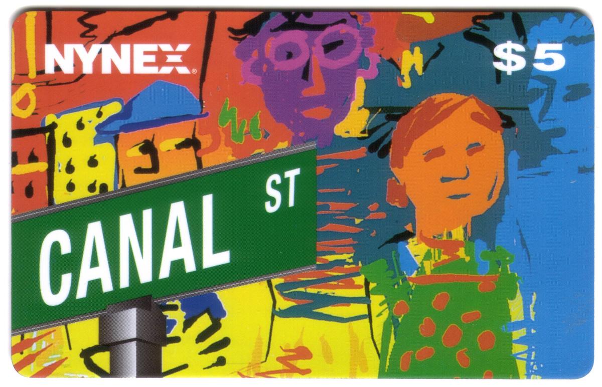 The card includes the label "NYNEX - New York Tel," identifying the telecommunications provider, and ties the design to New York’s historic phone service. The use of bold colors and stylized graphic elements gives the card a contemporary, urban feel that reflects the dynamic spirit of New York City’s cultural landscape.