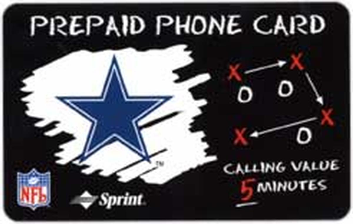The card’s layout is simple and professional, with no additional numbers or player images, emphasizing the team emblem and the association with Sprint’s phone service. This prepaid phone card appeals to fans of the Dallas Cowboys and collectors of NFL-themed memorabilia.