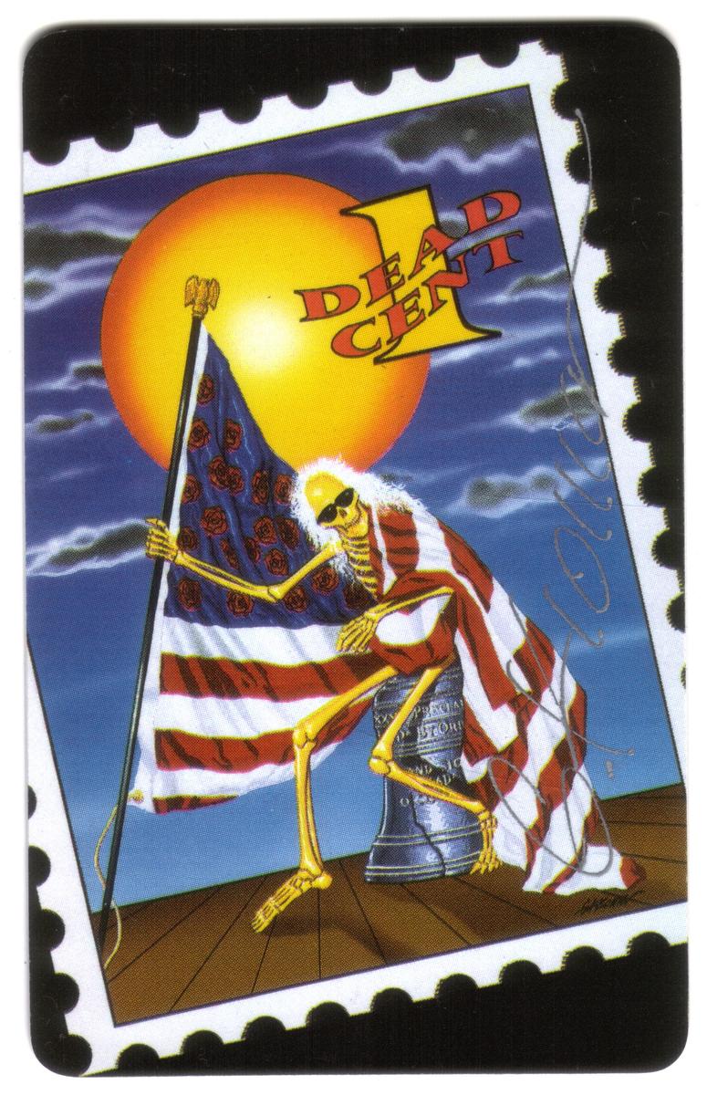 Overall, this collectible phone card blends artistic expression, American symbolism, and the spirit of the Grateful Dead through vivid, detailed illustration. It is signed by Gary Kroman, adding a layer of authenticity and value for collectors interested in music-themed art and phone card memorabilia.