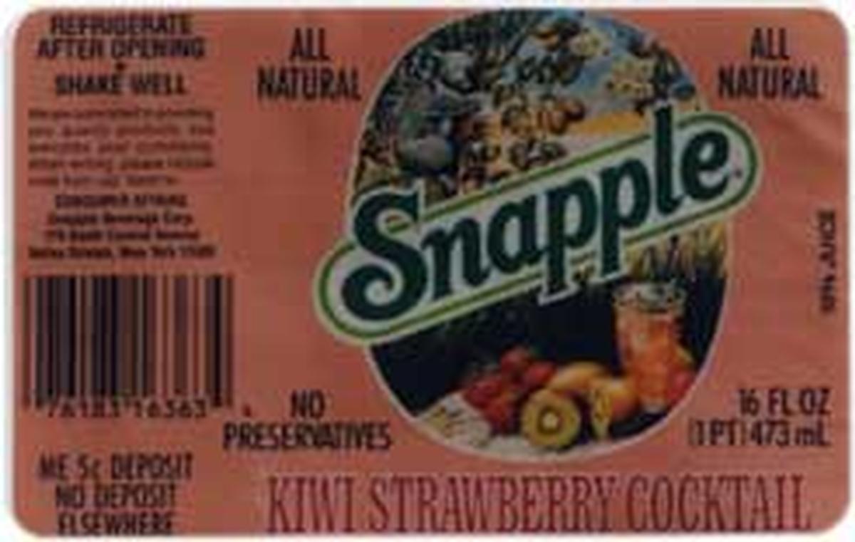 Corporate branding and trademarks are also clearly present, reinforcing the promotional connection to Snapple products. The combination of the koala mascot, fruit imagery, and beverage details establishes a focused promotional collectible designed around the Kiwi Strawberry Cocktail Snapple flavor.