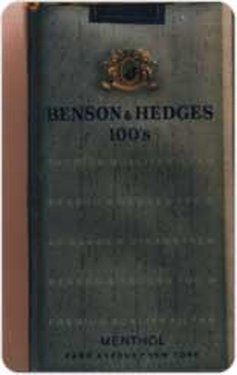 The design uses a clean, straightforward layout emphasizing the cigarette brand with no additional fantasy or thematic imagery. The text is clear and readable, ensuring that the product name and corporate branding stand out to collectors and consumers alike. The card does not include other graphic elements, focusing solely on the promotional aspect for Benson & Hedges Menthol Cigarettes.