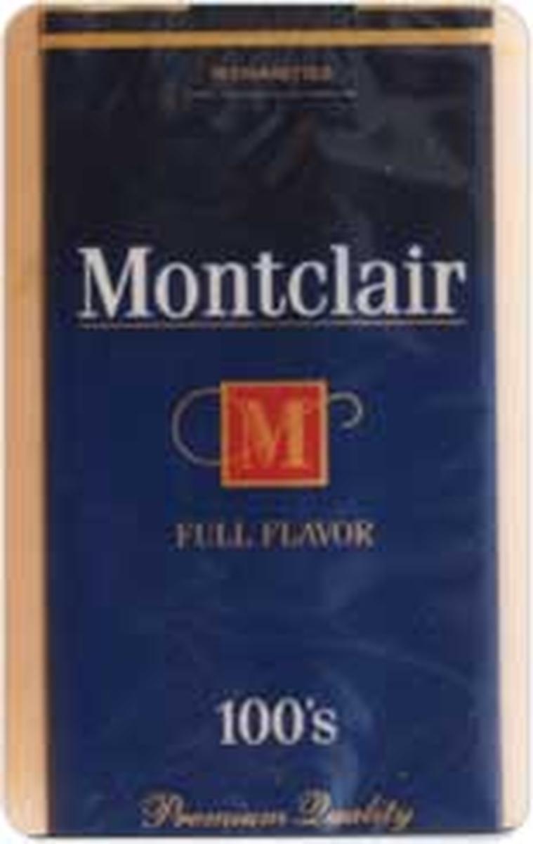 The design is straightforward, with no additional characters, landscapes, or promotional elements other than the cigarette pack and the text related to Montclair Full Flavor 100's Cigarettes. The overall presentation is focused on emphasizing the brand and quality of the tobacco product, making it a distinctive collectible item that highlights Montclair cigarettes under Reed Communications.
