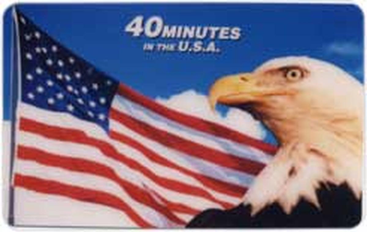 Overall, the card is designed to evoke strong patriotic feelings, emphasizing American identity through the use of national emblems: U.S. flags, bald eagles, and the familiar colors of the United States flag. The details printed on the card provide clear factual identification of its service type, expiration date, and issuing company.