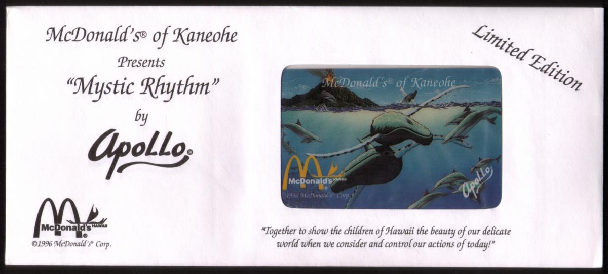 The McDonald’s logo with the golden arches and the words “McDonald’s Hawaii” appear in the bottom left corner of the card. The Apollo logo is located in the bottom right corner, indicating the card's artistic creator. The copyright “© 1996 McDonald’s Corp.” is visible, confirming the card’s production date and association with the McDonald’s corporation.