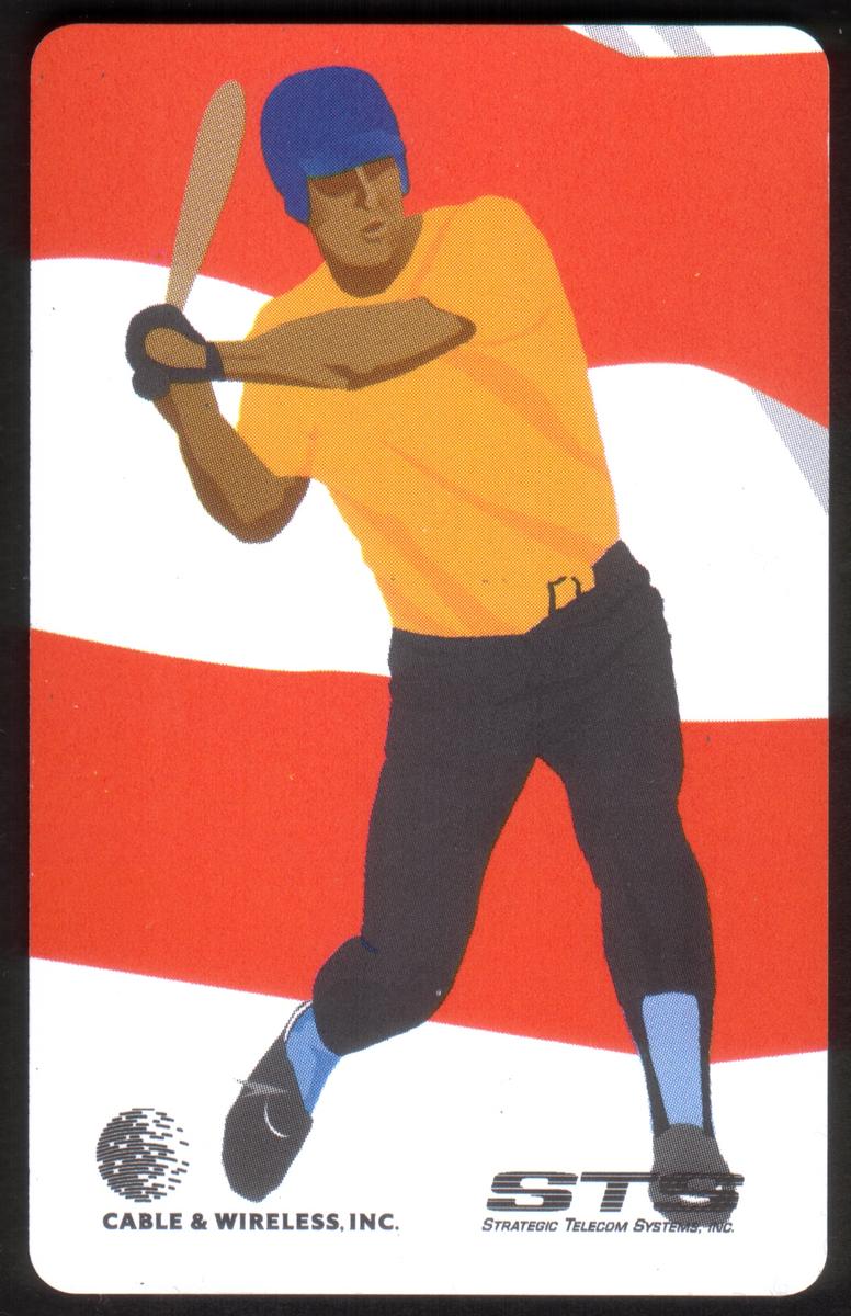 The card is issued by Strategic Telecom Sys., as noted in the overall design and text. The artwork style follows the theme of sports and collectibles, portraying the baseball player with clear and vivid detail. The visual and textual elements combine to create a distinctive collectible phone card focused on baseball, emphasizing both the sport and the issuer’s branding.