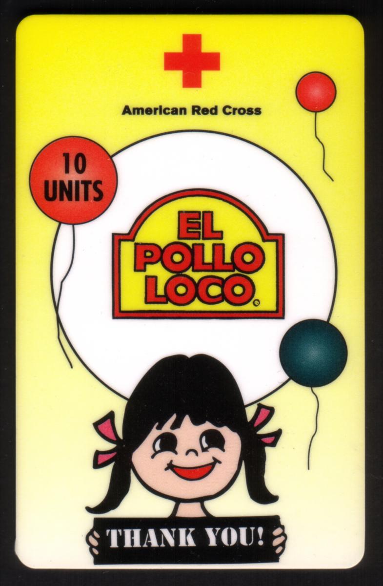 The front of the card includes the Tele-Tagz branding, a collectible phone card series, and uses a colorful layout that combines text and logos clearly. The American Red Cross logo is red and white, positioned near the El Pollo Loco name, which appears in its classic yellow and red branding style. The card commemorates the collaboration between these organizations for the Arcadia Open Air Festival.