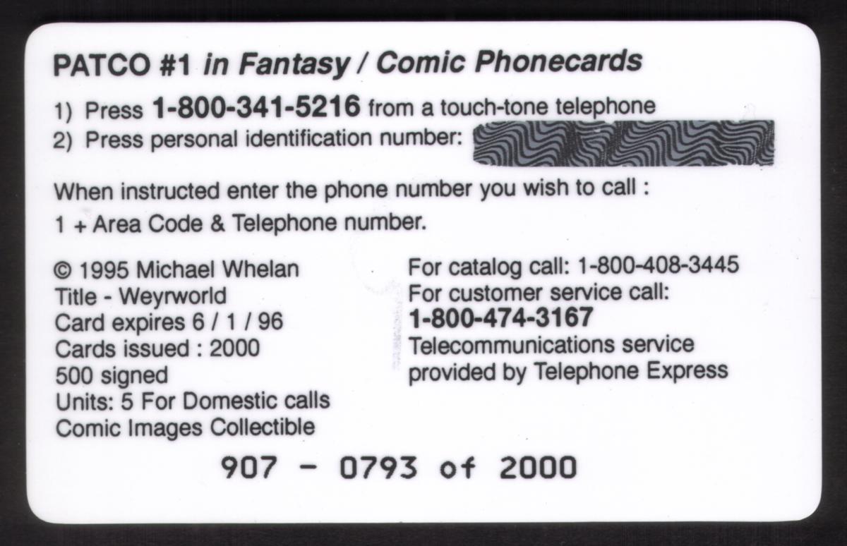 Since we have the world's largest inventory of USA phonecards for collectors, you will not necessarily receive the identical serial/batch/PIN number that we have scanned/pictured.