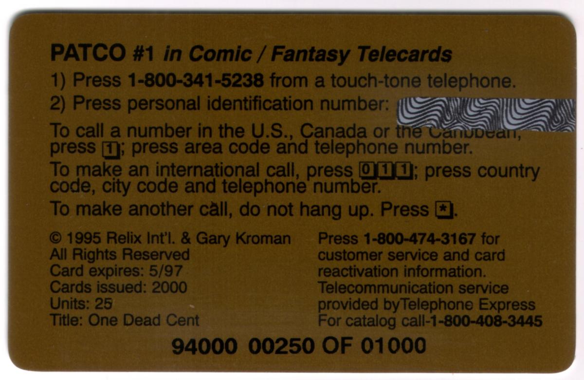 Since we have the world's largest inventory of USA phonecards for collectors, you will not necessarily receive the identical serial/batch/PIN number that we have scanned/pictured.