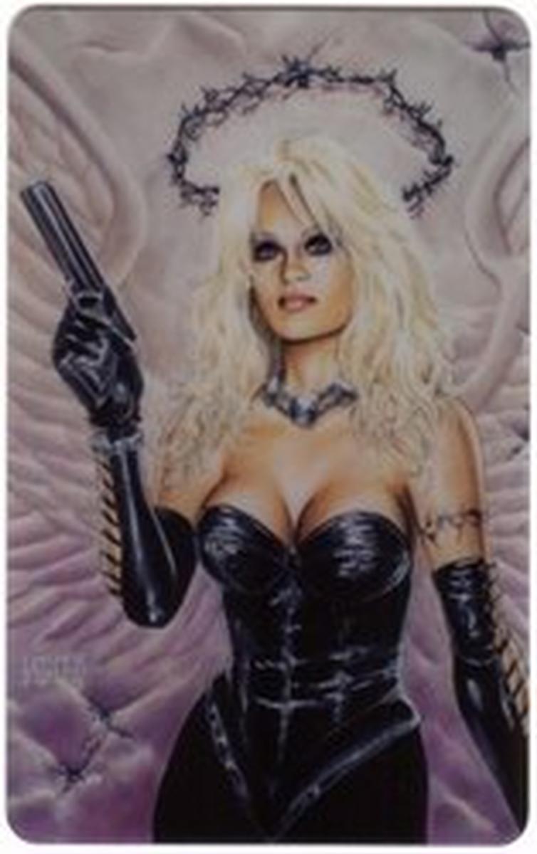 This collectible is marked with the “PATCO” branding, indicating its production or distribution by that entity. The card integrates Dark Horse Comics’ signature dark and bold narrative aesthetics, making it a unique piece for collectors interested in comic book art, strong female characters, and weapon-themed illustrations.
