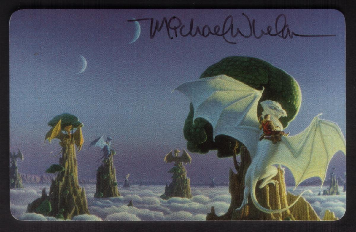 Michael Whelan’s signature is prominently displayed at the top right of the card. The card includes the text "PATCO" in the lower right corner in small print. The artistic style emphasizes a dreamy, otherworldly atmosphere with intricate details on the dragons and the terrain. The card is part of a limited or signed collectible series, enhancing its value for fantasy art and Michael Whelan collectors.