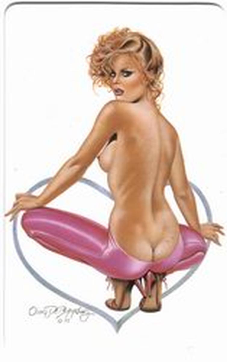 This collectible phone card features nude fantasy art by Olivia De Berardinis. The illustration showcases a nude female figure in a stylized, comic artwork style characteristic of De Berardinis’s adult-themed art. The artwork presents a soft color palette and smooth shading, emphasizing the figure with graceful, fluid lines. The name "Olivia De Berardinis" is visible on the card, confirming the artist.
