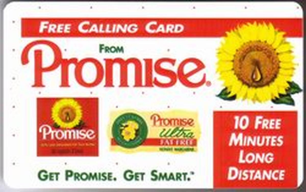 This phone card was issued as a collector’s item and is marked "USED." The date 1996 connects it directly to the marketing campaign for Promise Margarine during that year. The card functions as a collectible phone card with a focus on health and food promotion, specifically vegetable oils, representing a unique intersection of consumer products and telecommunication services.