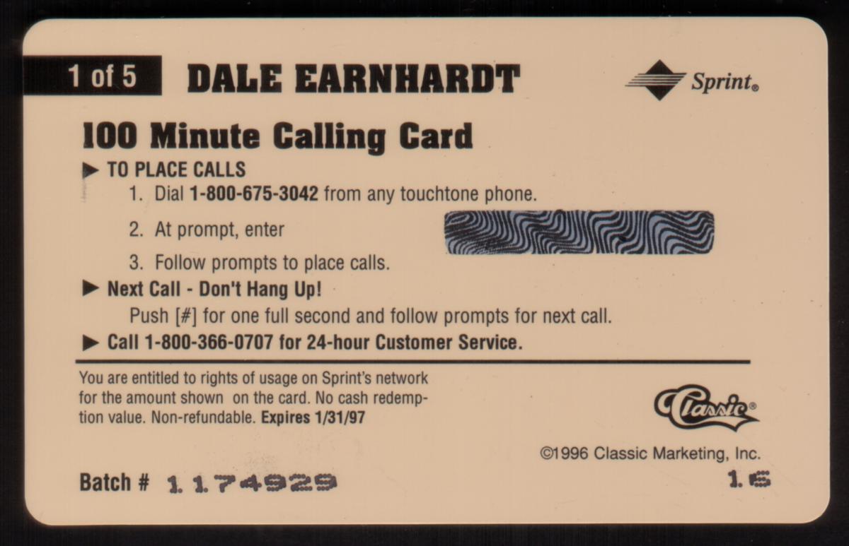 | Assets '96 : $100. Dale Earnhardt (Card #1 of 5) Exp 1/31/97 |