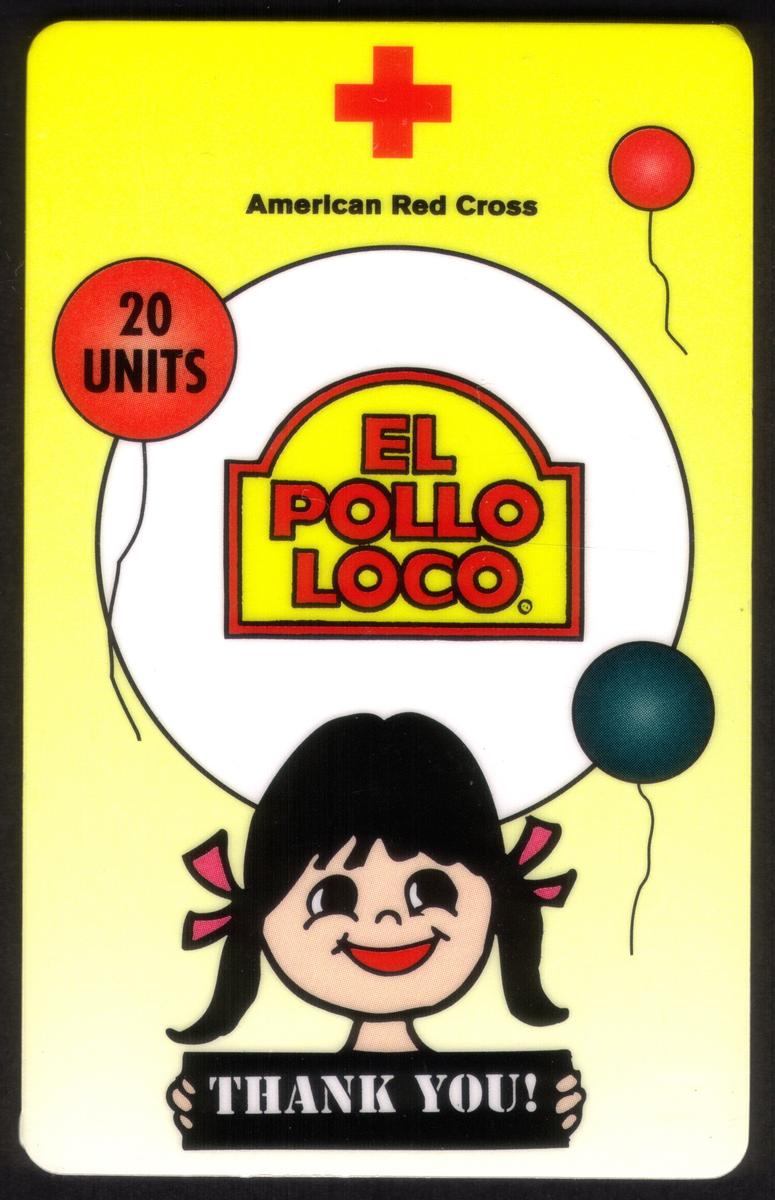 At the top left, the card has a small logo for Tele-Tagz, identifying the phone card series or issuer. The background features soft horizontal lines across a light-colored surface, providing a clean and simple backdrop for the card’s text and logos. The overall design is minimalistic, focusing on the clear presentation of the American Red Cross and El Pollo Loco brands alongside the Tele-Tagz mark.