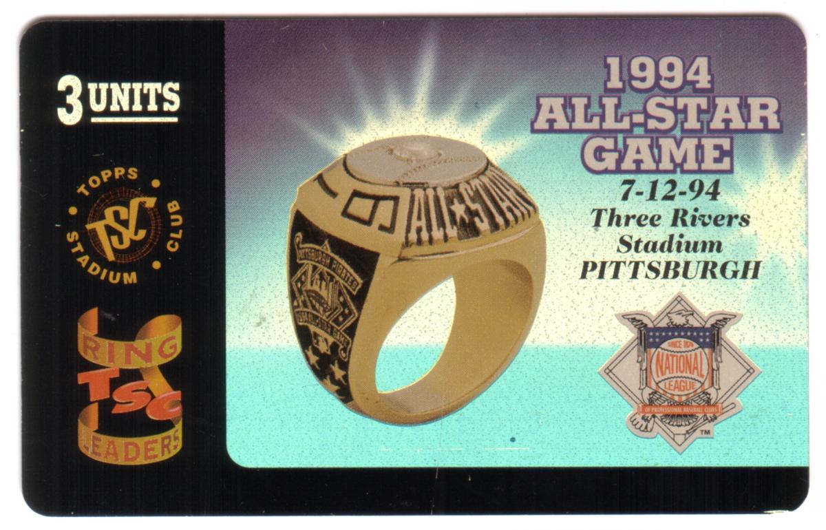 The card has a value of "3 UNITS" displayed in white at the upper left corner. The design highlights the 1994 Topps Stadium Club: All-Star Game collectible series tied to Major League Baseball, celebrating the event and its players through the representation of the commemorative ring.
