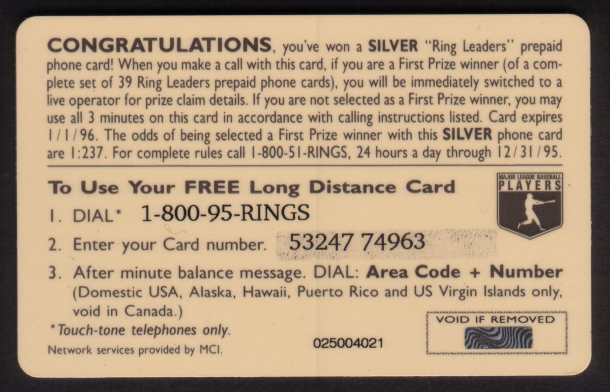 Since we have the world's largest inventory of USA phonecards for collectors, you will not necessarily receive the identical serial/batch/PIN number that we have scanned/pictured.