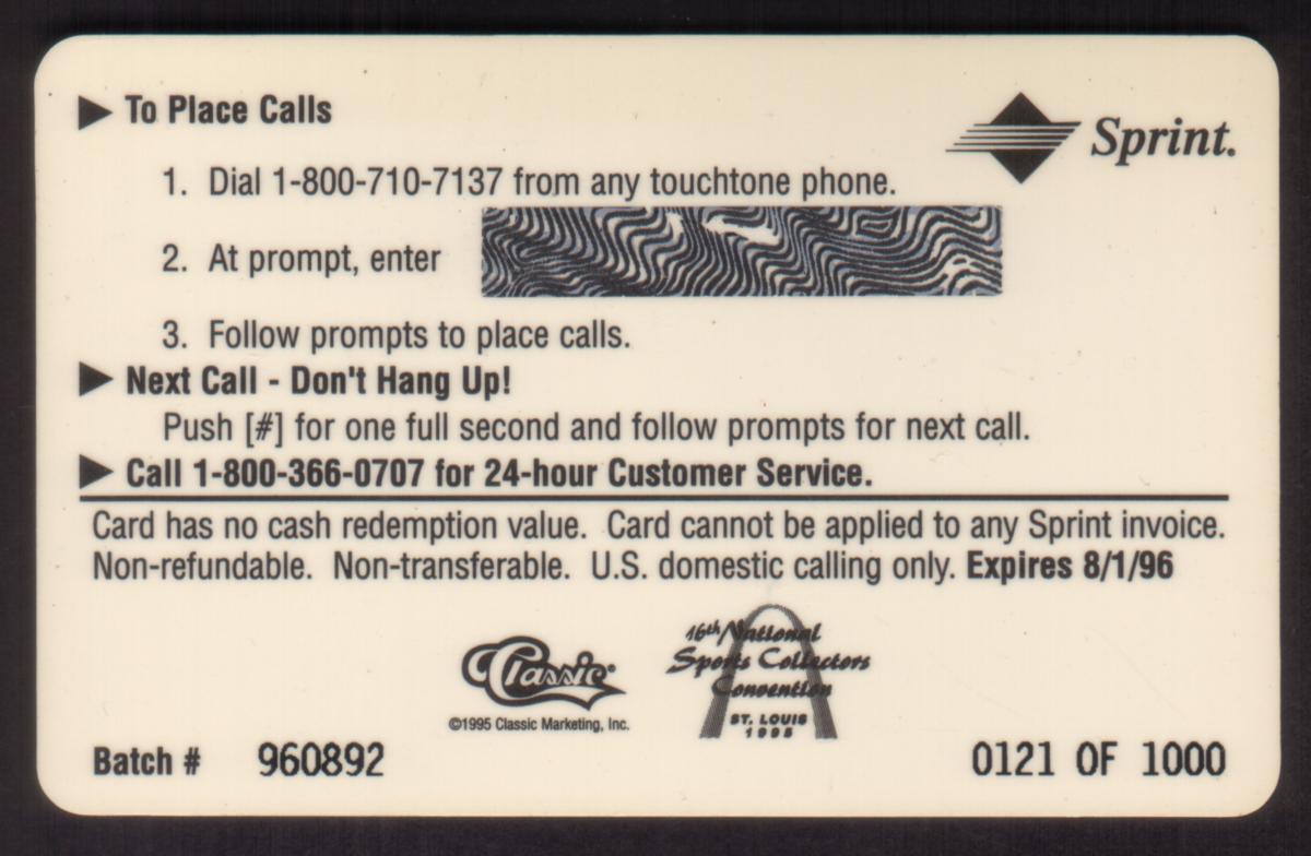 Since we have the world's largest inventory of USA phonecards for collectors, you will not necessarily receive the identical serial/batch/PIN number that we have scanned/pictured.