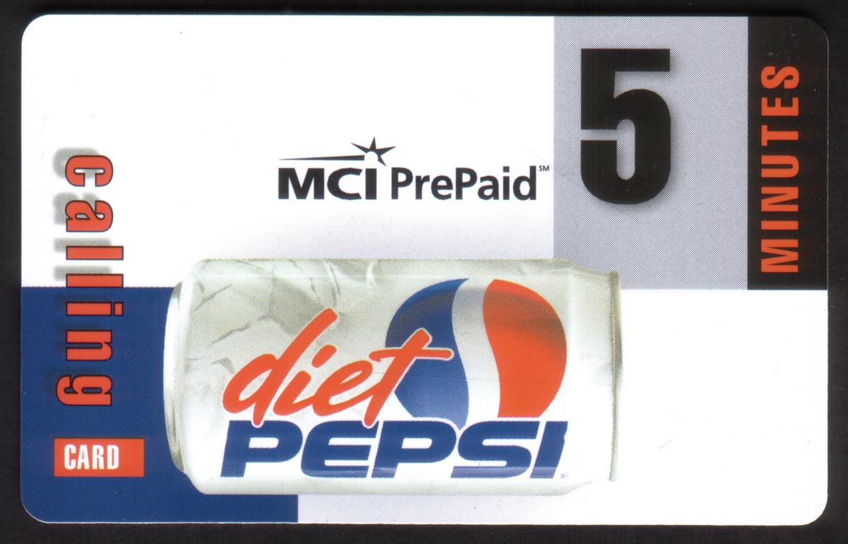The overall background is primarily white with gray and blue accents, creating a clean and modern look emphasizing the Diet Pepsi branding alongside the MCI telecommunications logo.