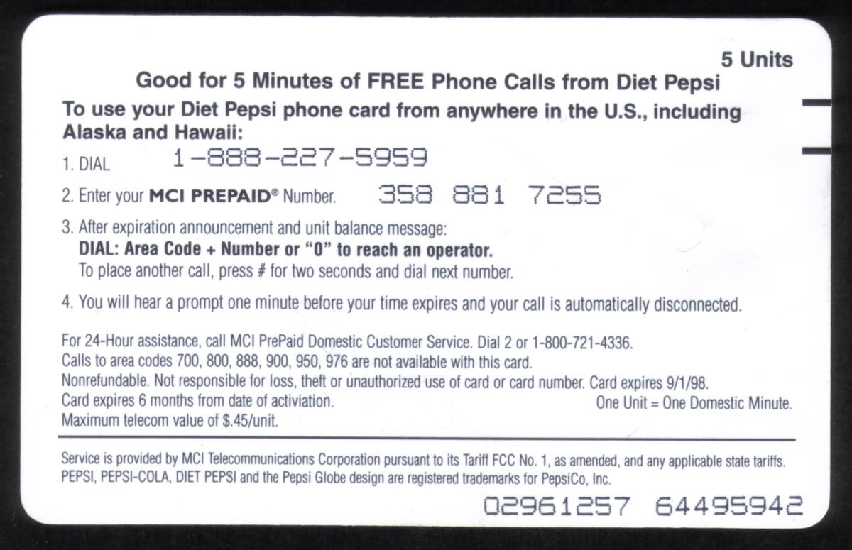Since we have the world's largest inventory of USA phonecards for collectors, you will not necessarily receive the identical serial/batch/PIN number that we have scanned/pictured.
