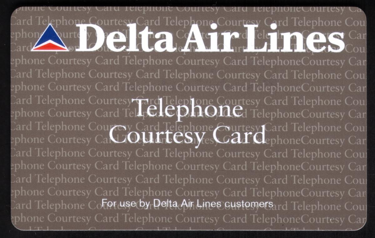 Overall, the card is clearly branded for Delta Air Lines and serves as a telephone courtesy card from 1995, combining aviation imagery with corporate logos and relevant textual information linked to LDDS WorldCom telecommunications.