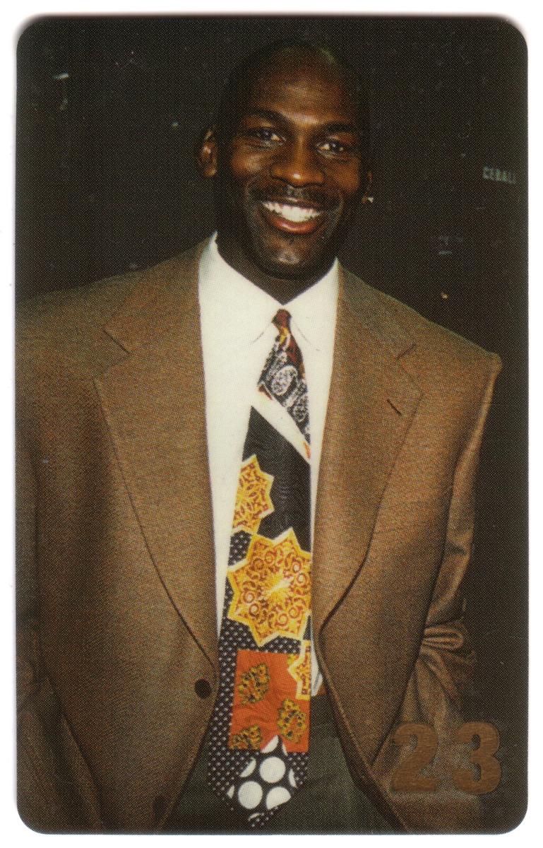The card is associated with the category of collectible phone cards and relates specifically to the theme of basketball and Michael Jordan’s retirement. The number 23 and Michael Jordan’s formal appearance make this card a tribute to his legacy and contributions to the sport.