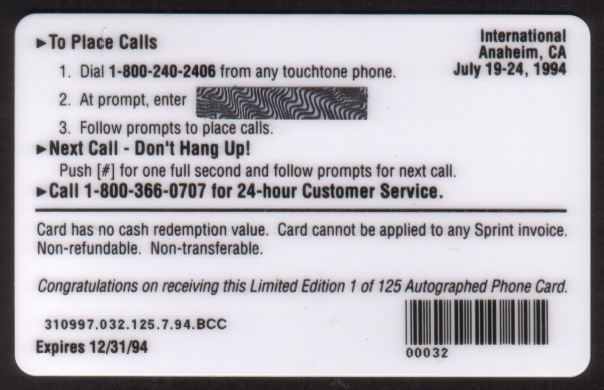 Since we have the world's largest inventory of USA phonecards for collectors, you will not necessarily receive the identical serial/batch/PIN number that we have scanned/pictured.