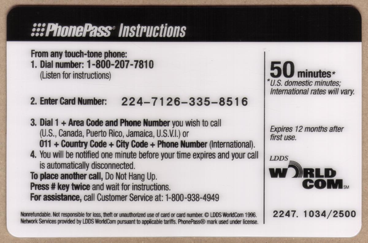 Since we have the world's largest inventory of USA phonecards for collectors, you will not necessarily receive the identical serial/batch/PIN number that we have scanned/pictured.