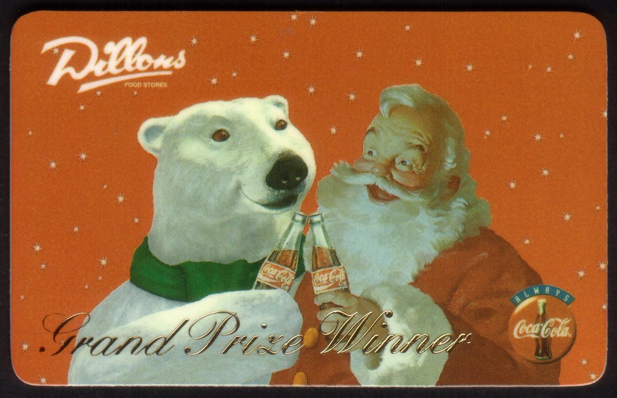This card is marked with "Dillons Coke 1994 GRAND PRIZE WINNER Santa & Bear Toasting Coca-Cola" and the marketing entity is TekTel Marketing Inc., as indicated by the keywords. The overall design promotes the iconic Coca-Cola holiday imagery featuring St. Nick and the polar bear with a nostalgic, vintage-style illustration.