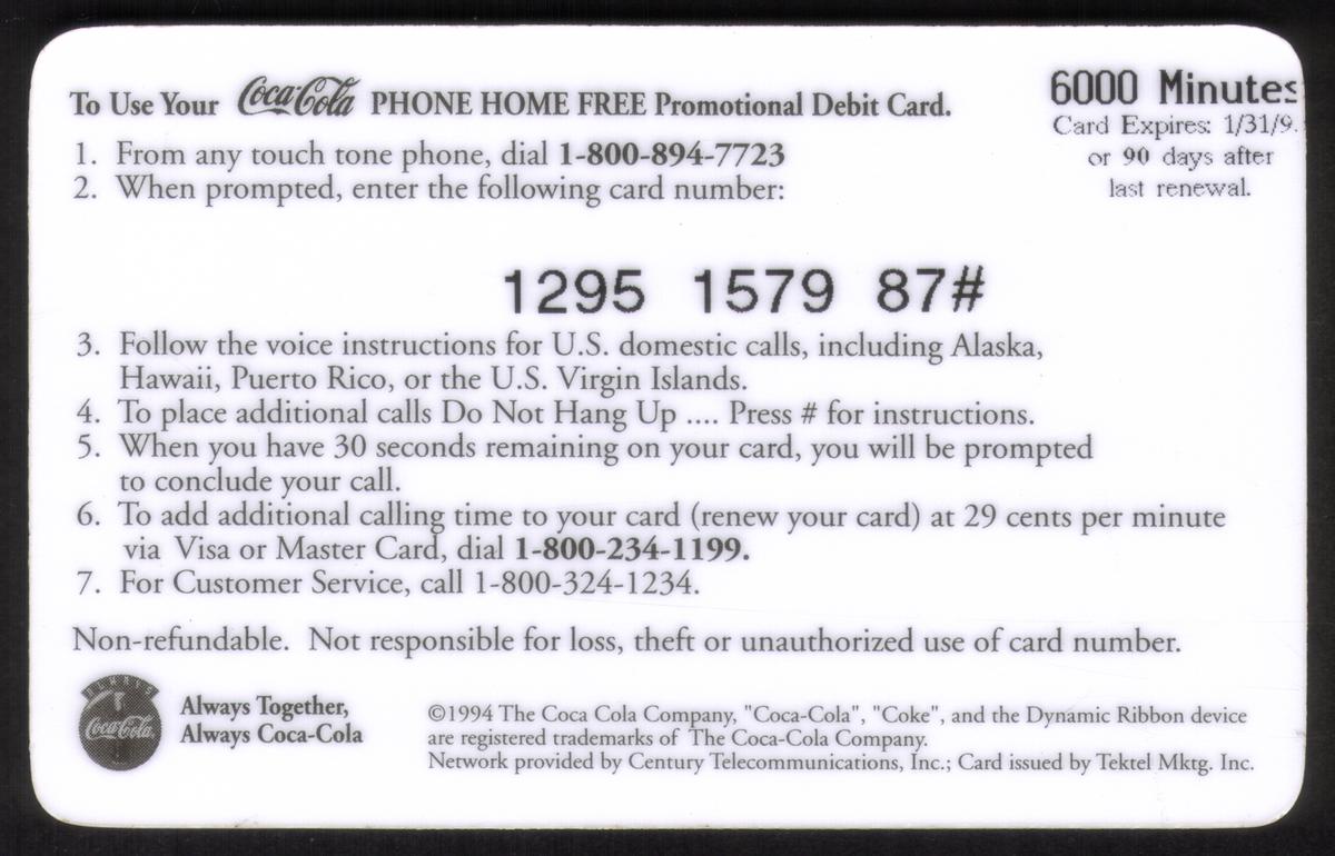 Since we have the world's largest inventory of USA phonecards for collectors, you will not necessarily receive the identical serial/batch/PIN number that we have scanned/pictured.