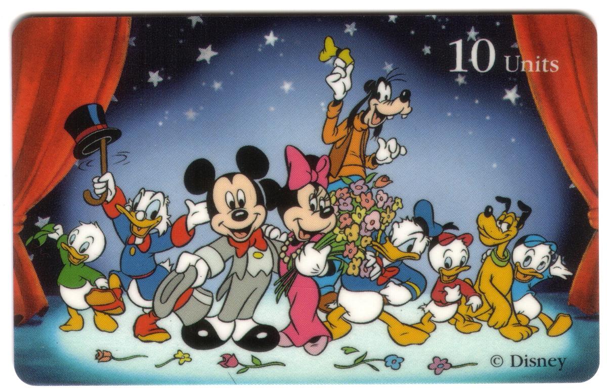This set of five collectible phone cards from the 1995 Disney Series features iconic Disney characters including Scrooge McDuck, Mickey Mouse, Donald Duck, Huey, Dewey, Louie, Minnie Mouse, Goofy, and Pluto, highlighting classic themes and colorful animation. Each card shows the value of 10 Units prominently displayed.