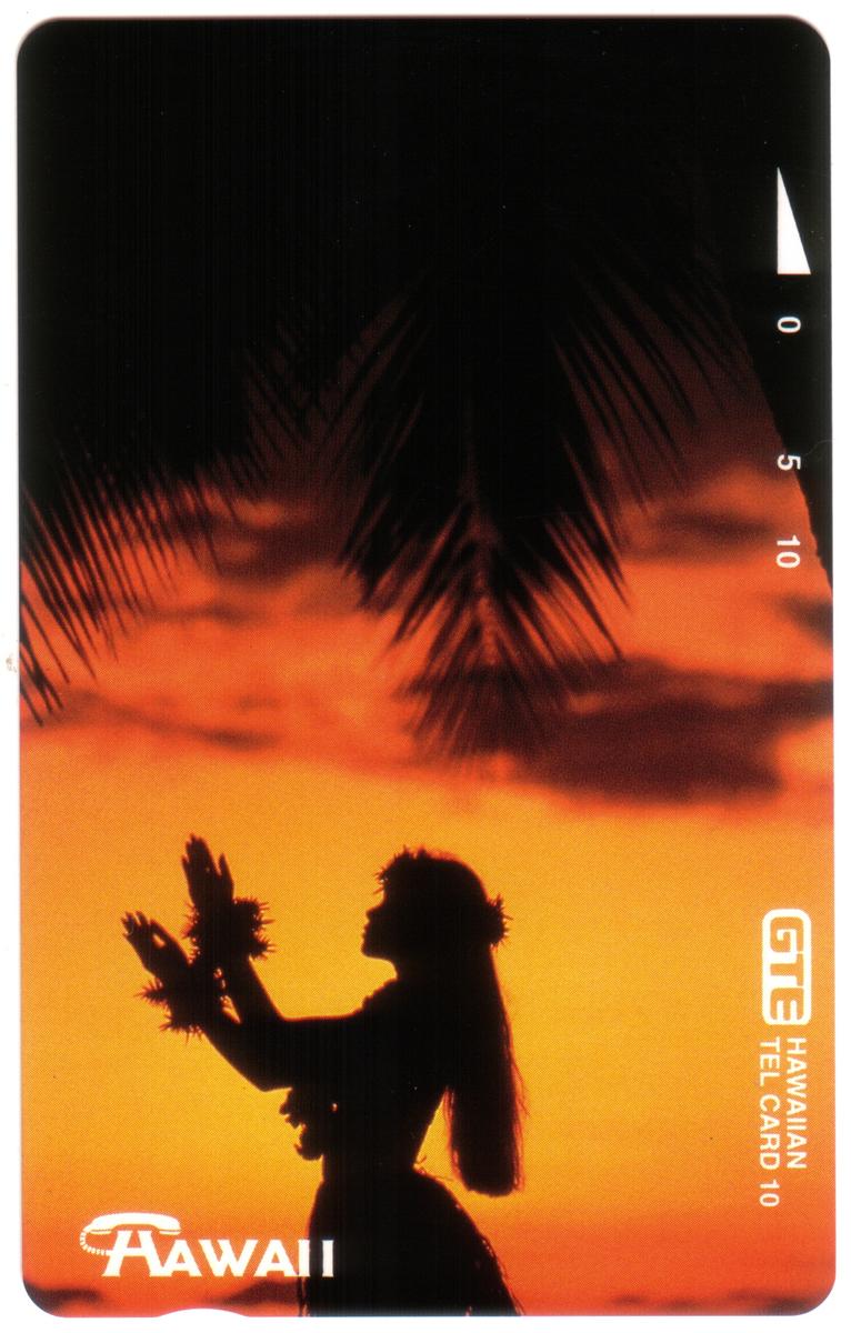 Overall, the phone card combines cultural representation and corporate branding, featuring authentic Hawaiian motifs and the GTE Hawaiian Telephone logo. The design captures a vibrant scene of local heritage while specifying the card’s function for telephone use.