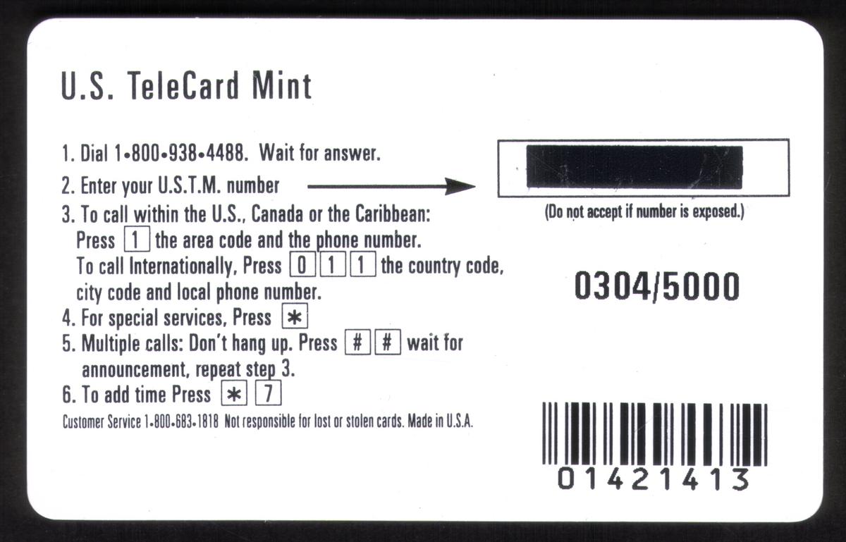 Since we have the world's largest inventory of USA phonecards for collectors, you will not necessarily receive the identical serial/batch/PIN number that we have scanned/pictured.