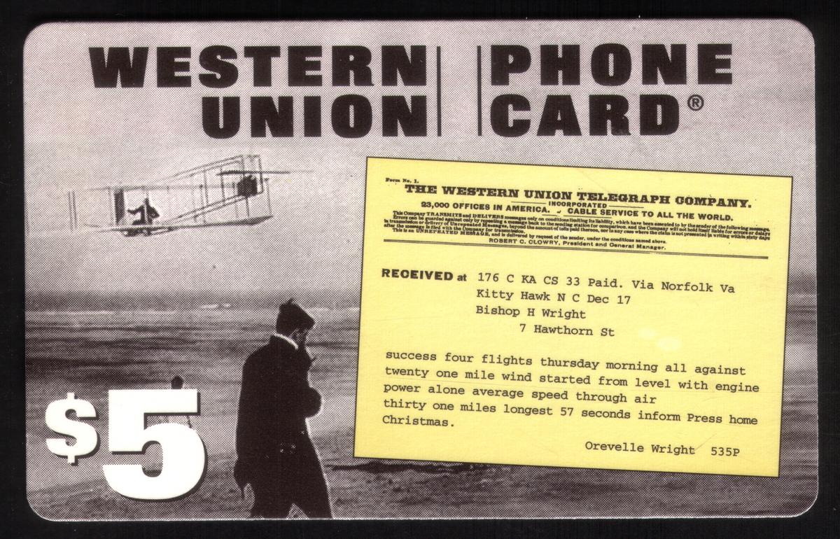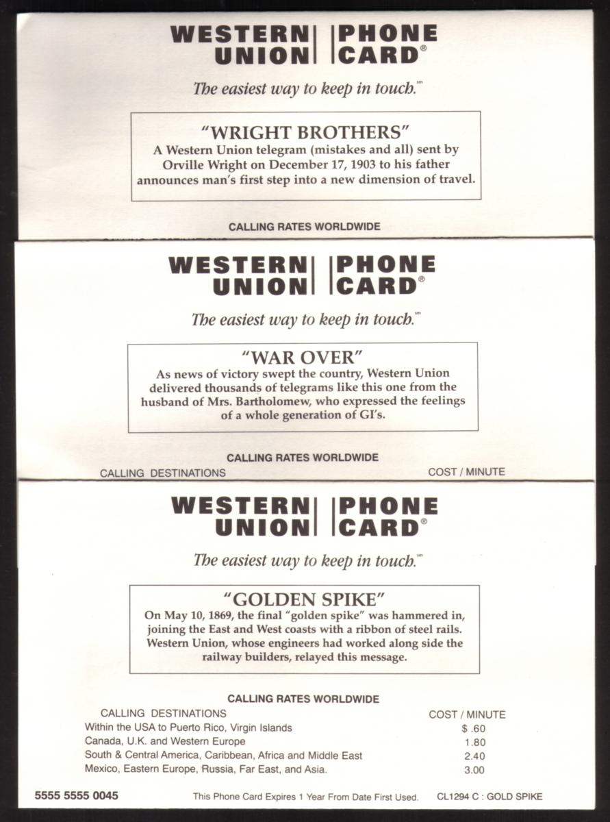Together, these Western Union Phone Cards commemorate important historical achievements and personal moments, using actual telegram excerpts to connect viewers with the stories behind the images. Each card emphasizes Western Union's role in communication during pivotal times in history.
