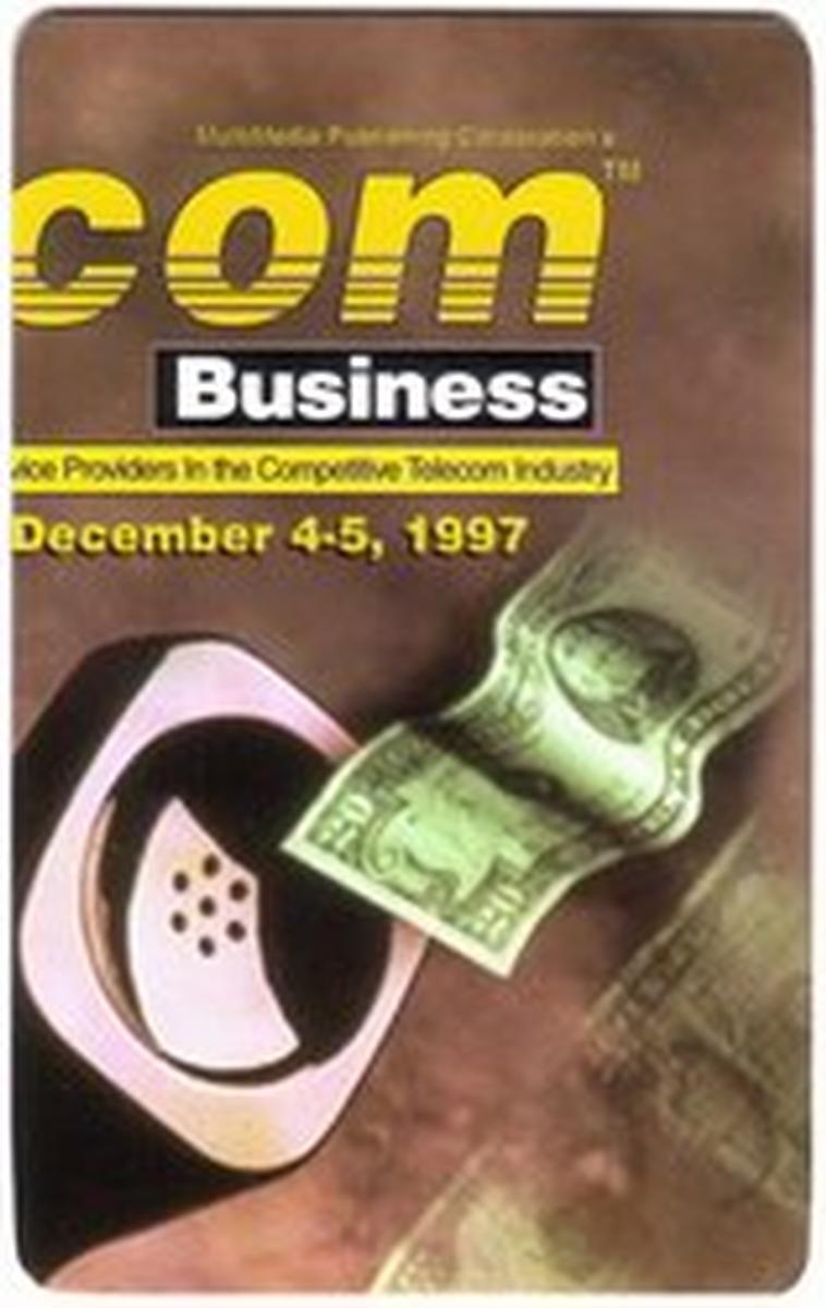 This collectible phone card commemorates the Telecard Events Conference & Exposition held on December 4-5, 1997, focused on the telecom business in the U.S. South region. The design features imagery associated with multimedia publishing alongside a handset and a $20 bill displaying Andrew Jackson, highlighting the commercial and financial aspects of telecommunications during that time. The card includes the text "com Business - December 4-5, 1997," indicating its direct connection to the event.