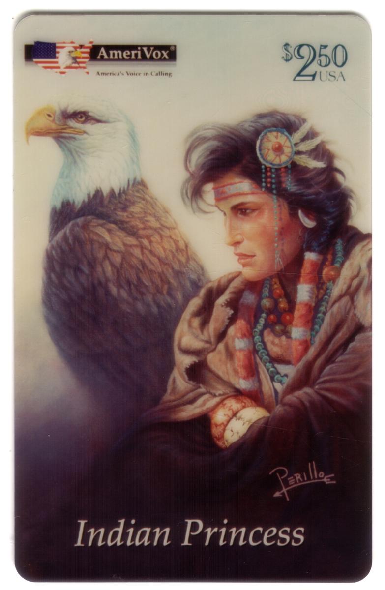 This collectible is marked by clear branding from AmeriVox and WorldCom, associating it with respected entities that connect the card to American cultural history. The design emphasizes tradition and artistry through its composition, making it a notable item for collectors interested in Americana and Native American motifs.