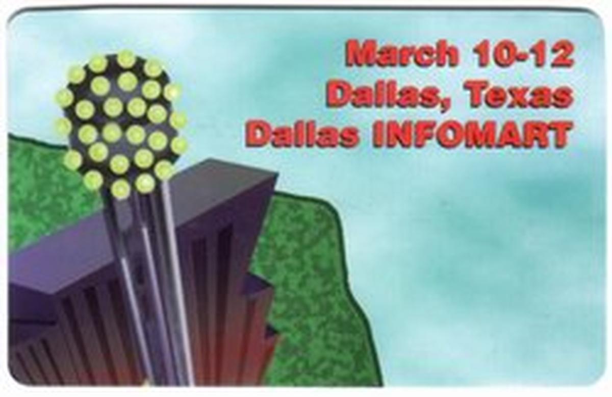 This card serves as a commemorative item of the Telecard World '98 event held in Dallas, Texas, reflecting the telecom industry's atmosphere in 1998. It represents the connection between telecommunication technology and conference exhibitions at the Dallas Infomart, making it a specialized collectible for enthusiasts and professionals interested in telecom business events from that year.